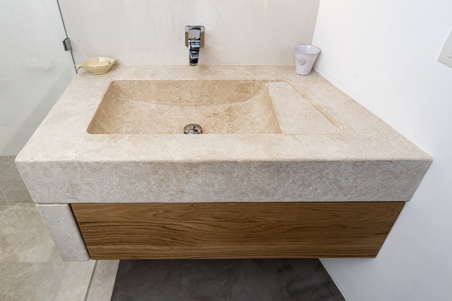 Per la lavorazione del marmo in Sardegna ci avvaliamo sempre di materiali di provenienza regionale come il marmo di Orosei, il quale ben si sposa alla collocazione sia in ambienti formali che informali.